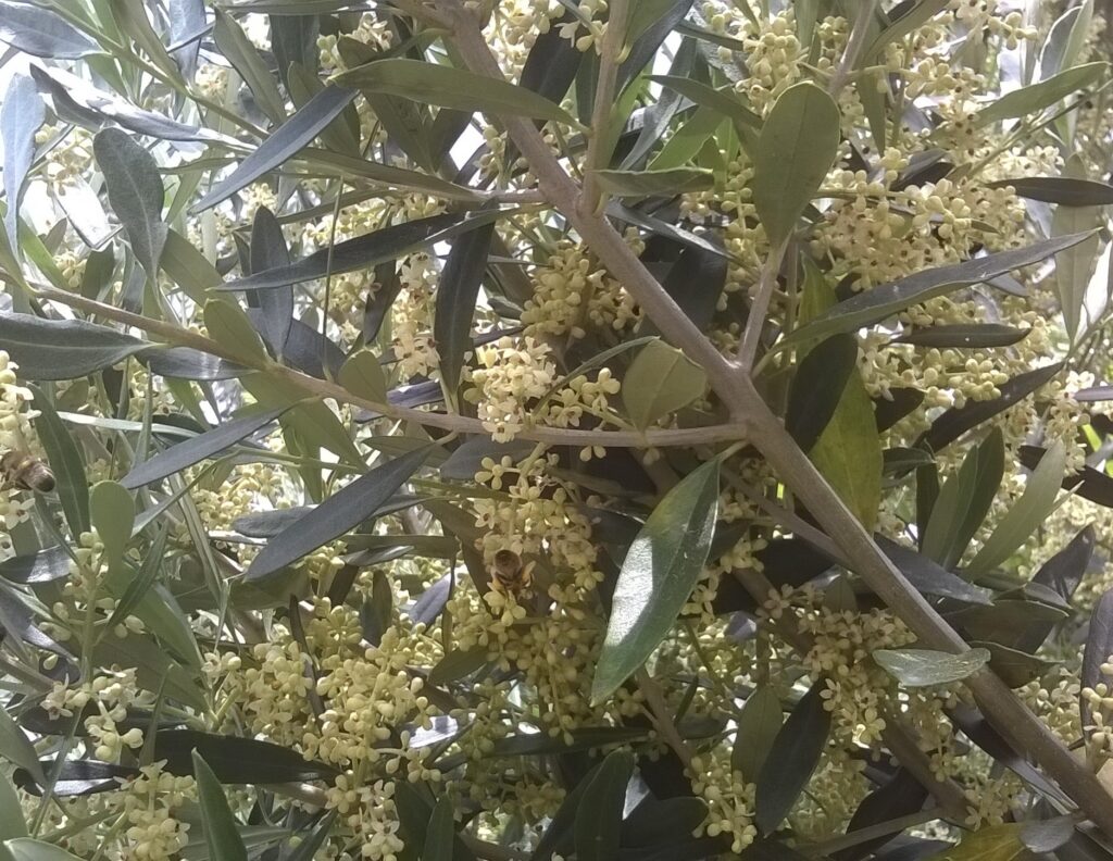 Olivier en fleurs avec abeille